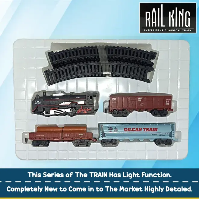 Fun and durable train set with track, locomotive, and passenger car — a perfect gift for kids! Runs on 2 AA batteries (not included).